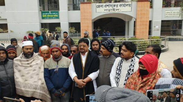 চাঁপাইনবাবগঞ্জে হরিজন সম্প্রদায়কে উচ্ছেদের প্রতিবাদে মানববন্ধন অনুষ্ঠিত