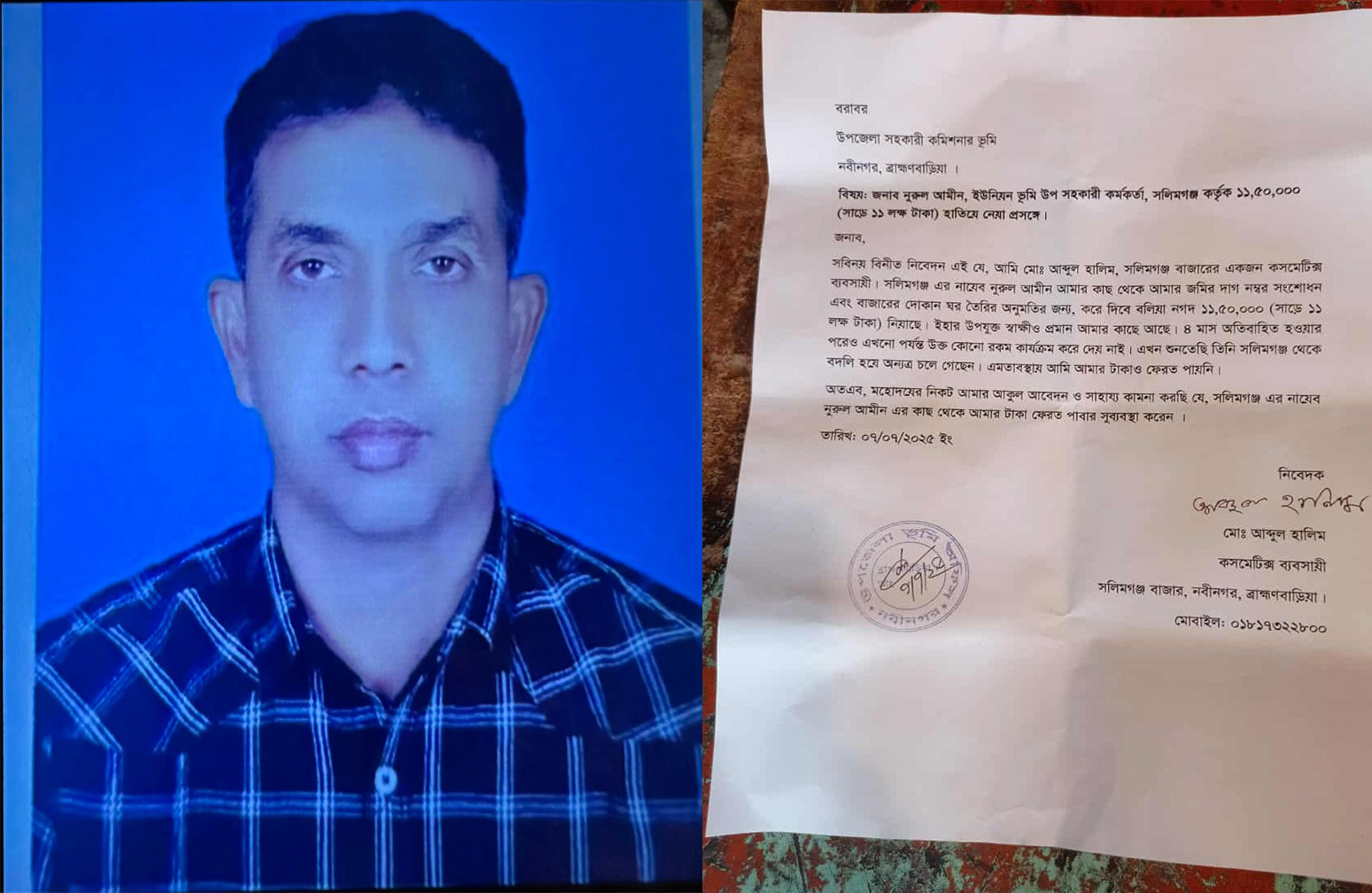 অভিযুক্ত ভূমি উপ-সহকারী কর্মকর্তা হলেন-মো.নুরুল আমিন, তিনি গত (৫ই আগস্ট) সরকার পতনের পর থেকে উপজেলার সলিমগঞ্জ ইউনিয়ন ভূমি অফিসে কর্মরত ছিলেন। সে ২০২৫ সালের (২৯ মে) বদলি হয়ে উপজেলার কাইতলা ইউনিয়ন ভূমি অফিসে যোগদান করেন।