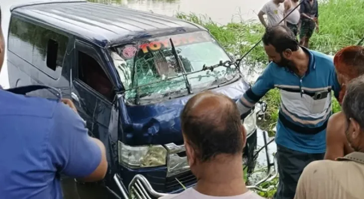 পুলিশ ও ফায়ার সার্ভিস জানায়, ঢাকার এয়ারপোর্ট থেকে ওমান প্রবাসী বাহারউদ্দিনকে আনতে যান তার স্বজনরা। ফেরার সময় নিয়ন্ত্রণ হারিয়ে মাইক্রোবাসটি সড়কের পাশে খালে পড়ে যায়।