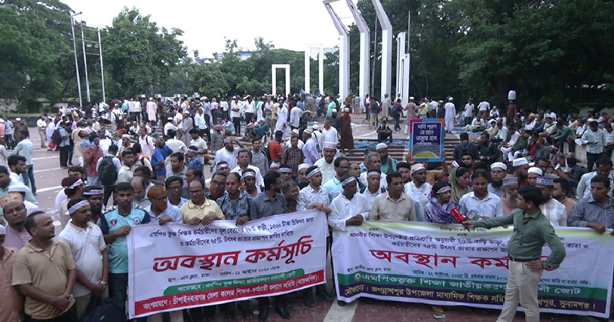 এদিকে, রাজধানী ঢাকাসহ দেশের বিভিন্ন স্থানে বেসরকারি এমপিওভুক্ত শিক্ষকরা সকাল থেকে শ্রেণিকক্ষে প্রবেশ না করে বিদ্যালয়ের আঙিনা, শিক্ষক লাউঞ্জ কিংবা অফিসকক্ষে বসে অবস্থান কর্মসূচি চালিয়ে যাচ্ছেন।