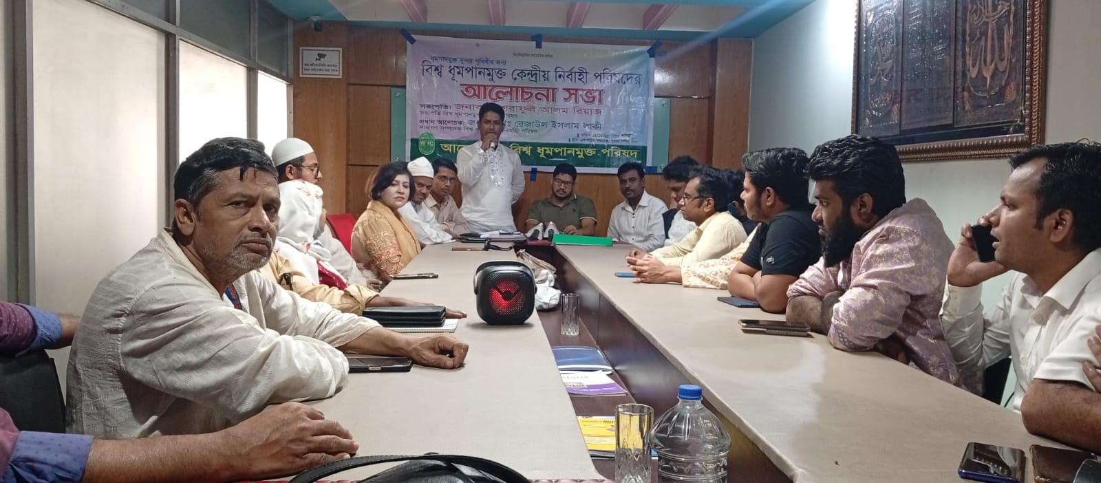 গতকাল সকাল ১১ টায় রাজধানীর পুরানা পল্টন মোড় এল মল্লিক কমপ্লেক্স কনফারেন্স হল রুমে বিশ্ব ধূমপানমুক্ত কেন্দ্রীয় নির্বাহী পরিষদের জরুরী মিটিং অনুষ্ঠিত হয়। উক্ত মিটিংয়ে আগামী ডিসেম্বর মাসে সংগঠনের প্রতিষ্ঠাবার্ষিকী ও উপদেষ্টা পরিষদের সম্মানিত সদস্যদের বরন অনুষ্ঠানের সিদ্ধান্ত নেয়া হয়।